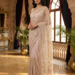 Beige Net Heavy Hand Embroidery Saree With Readymade Blouse (Copy)